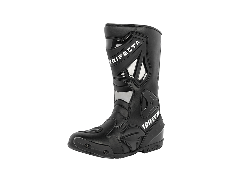 Trifecta Street Racing Boots offering by Trifecta moto gear is made by 100% Cowhide leather with waterproof layer and ankle protection we used protection on it CE Approved Protection for more protection of riders during bike rider because riders feel more comfort to bike ride.